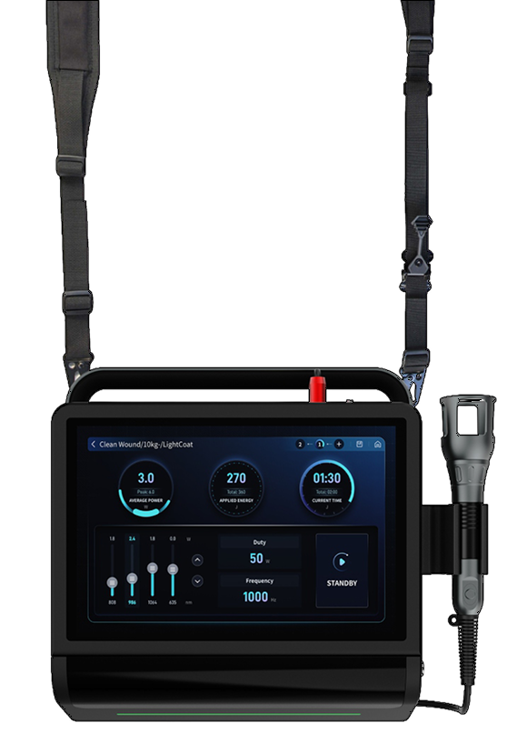 Each wavelength is specifically selected to target different biological tissues and therapeutic goals. By combining multiple wavelengths, the system delivers optimized energy absorption, enhanced cellular response, improved circulation, and deeper tissue penetration for comprehensive and effective laser therapy.